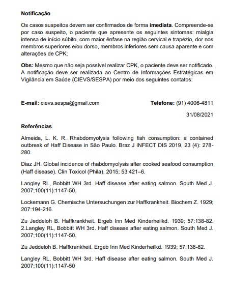 O governo do estado, através da Secretaria Estadual de Saúde (SESPA), emitiu no dia 01/09, um alerta epidemiológico sobre o "risco da ocorrência de casos de doença Haff". A SESPA, já se prepara para um possível surto da doença no estado.